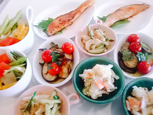 お料理好きの皆さまがお集まりくださいました。とても個性的なお料理を9品ご用意しました。 お昼から豪華な食事会です.:*゚..:。:ヽ(○´3`)ノ.:*゚..:。:.さらに