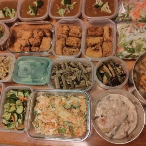 ホームページからご依頼くださったB様邸の、夕食についてのご紹介です。お嬢様は中学三年生。お兄ちゃんは見事、第一志望の大学に合格され寮生活をされることとなりました。孫と食べる夕食を楽しみにお越しいただいているお祖父ちゃんと4人分のお料理のご紹介です。