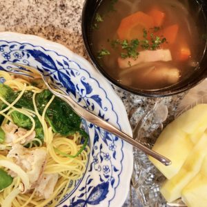 ホームページからご依頼くださったB様邸の、夕食についてのご紹介です。お嬢様は中学三年生。お兄ちゃんは見事、第一志望の大学に合格され寮生活をされることとなりました。孫と食べる夕食を楽しみにお越しいただいているお祖父ちゃんと4人分のお料理のご紹介です。