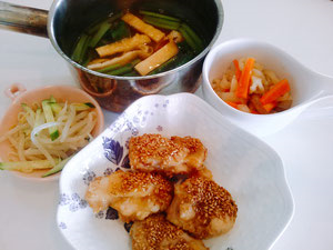 副菜はサッパリしたもやしときゅうりの和え物にしました!(^^)!