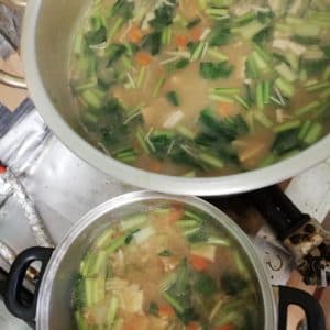 出汁をしっかり取ったら、わかめとお豆腐とたっぷりのネギでシンプルにお吸い物を作りました。
