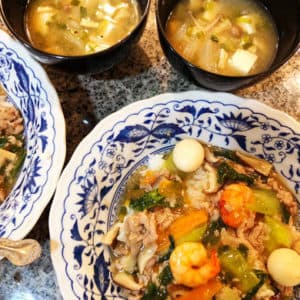 今回もえびと鶏肉としいたけを入れて、、、食欲が出ないときに召し上がって頂きたいです。