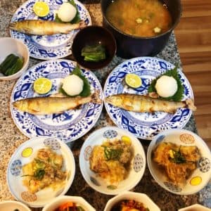 料理をしていると出来上がったお皿に猫ちゃんたちがやってきます。