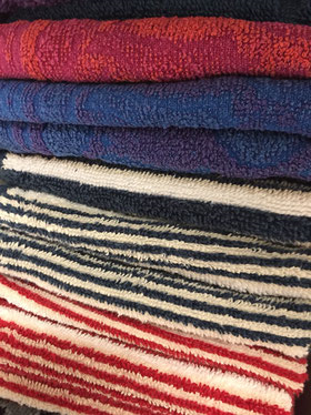 沢山の洗いあがった洗濯物をたたんでいきます。タオルやハンカチは色分けして大きさをそろえています。輪が手前になるように収納するとスッキリ見えます。ブラウスはアイロンがけしています。お嬢様のお洋服はお部屋に運び、引き出しに入るものは収納させていただきました。