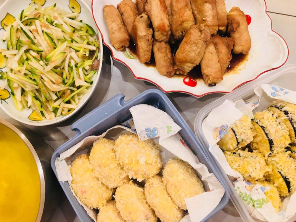 なすとズッキーニを食べやすい大きさに切り、豚肉で巻きました。
