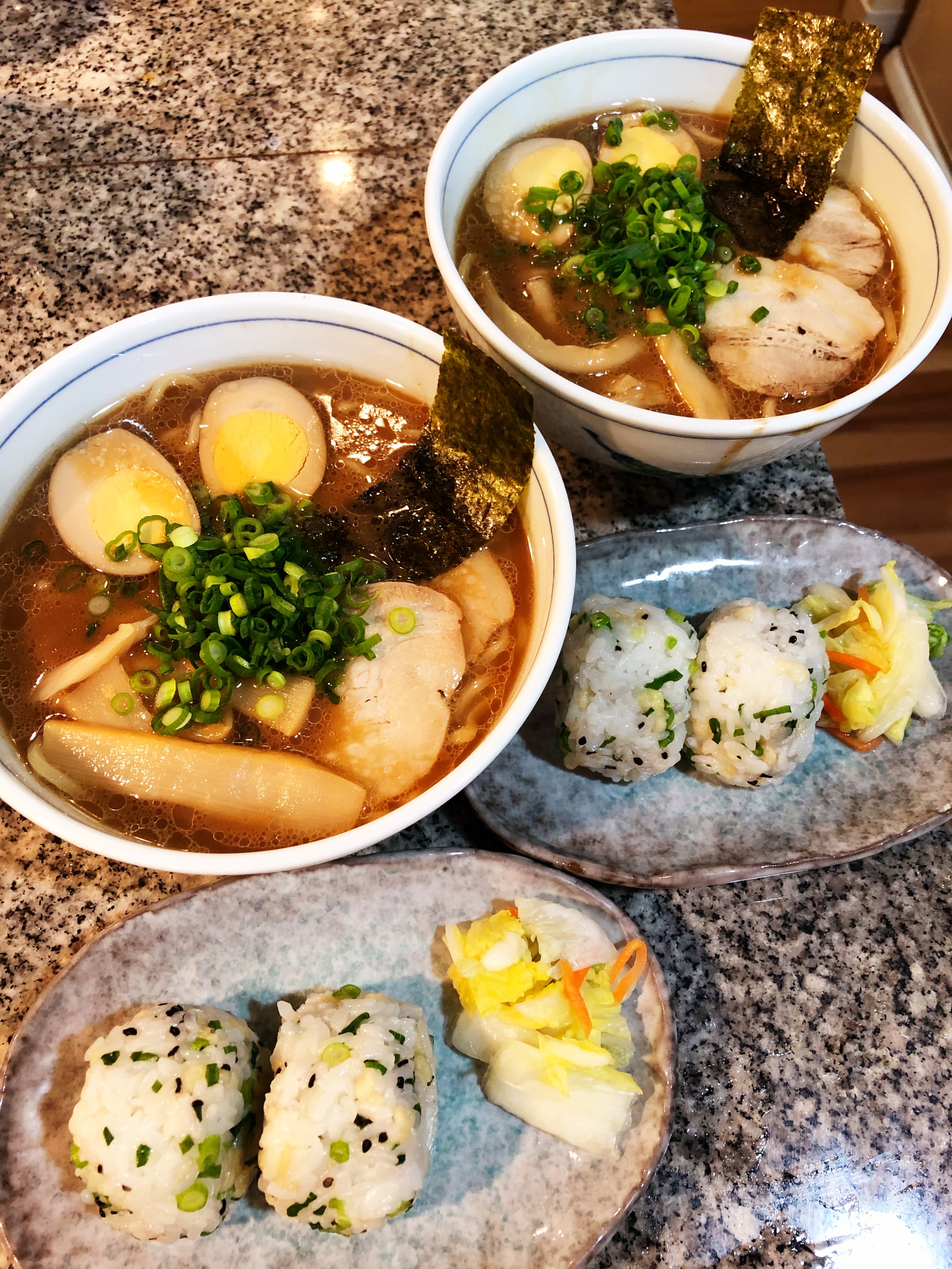 お母様から頂き物の生ラーメンがあるので使ってもらえませんか?との事で御昼食はラーメンに決定致しました。トッピングは味付け玉子、メンマ、焼豚、海苔、青葱です。ボリュームがあったので麺の量を少し減らしてお出し致しました。