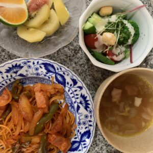 玉ねぎキャベツの入った野菜とミンチ肉のミンチカツをご用意させていただきました☺