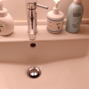 水回りは毎回念入りにお掃除しています。お風呂場の排水溝と共に、洗面所の排水も毛くずを取り除きブラシで磨いてぬめりやカビを取り除いています。