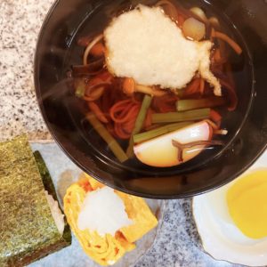 シュウマイで余った挽肉を使って肉団子にし、奥様が用意してくださった出汁を使ってスープにしました。