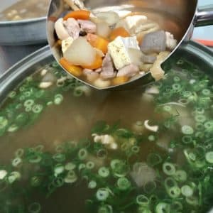 煮立たせた出汁汁、酒、みりん、醤油、生姜入りの出汁につけ込んでいます。