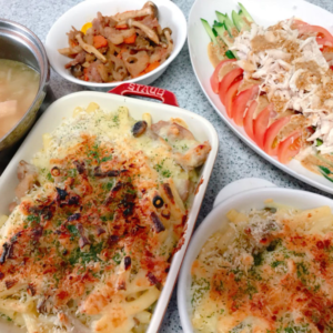 育ち盛りの男の子たちがいらっしゃるので、ご飯がすすむしっかりとした味付けのおかずと奥さま達がお好きなさっぱり系のおかずとバランスを考えてお作りしています。