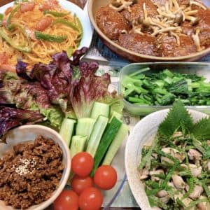 今回もありがとうございました。豚のしょうが焼きと里芋餅が特に好評でした。ご飯が足りなくなりました。里芋の味噌だれが美味しくて、今度は茄子田楽をリクエストしてもいいなという声が出ていました。鶏ハムもいつも美味しく、ネギたれもよくあっていました。ありがとうございました。