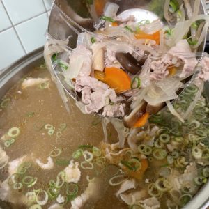 本日は、お母様、ご長男様のリクエストで他人丼をお作りさせて頂きました。筋肉、骨、肌、髪、血液、酵素、免疫物質…など体を形作り、生命を維持する上で欠かせない栄養素「タンパク質」です。タンパク質が不足するとエネルギーが足りなくなったり、貧血や免疫力の低下にもつながります。アスリートやダイエット界隈でもよく耳にする栄養素です。このタンパク質は約20種類のアミノ酸から合成されています。そのうち9種類のアミノ酸(バリン、ロイシン、イソロイシン、スレオニン、メチオニン、リジン、フェニルアラニン、トリプトファン、ヒスチジン)は体内で作り出すことができず、食べ物から補わなければなりません。この9種類のアミノ酸のことを「必須アミノ酸」といいます。効率よく必須アミノ酸を摂るのに重要なのは、量より質です。食べ物によっては「この栄養素は豊富に含まれているけど、この栄養素は少ない」というように必須アミノ酸のバランスが悪いものがあり、そうすると十分なタンパク質を補えません。そのバランスを100点で表した“アミノ酸スコア”というものがあり、まさに100点となる食べ物が牛肉なんです。白米は65、大豆は86であり、いかに牛肉がバランスの良さに優れているかがわかるかと思います。体を作るのに必要なタンパク質、そのタンパク質を作るのに必要な必須アミノ酸です。牛肉はその必須アミノ酸を効率よく摂取できる最強の食べ物です。