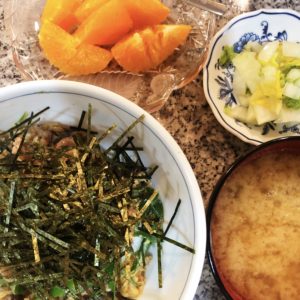 タケノコとわかめをたいたのと厚揚げとたきあげにいたしました
