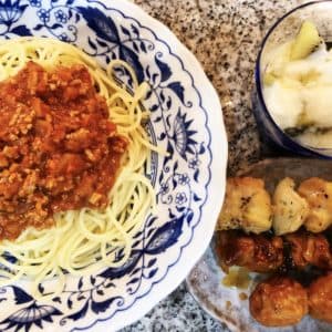 キャベツ1個、玉ねぎ4個、人参3本、セロリ1本、ベーコン1kg、ホールトマト缶4缶、にんにく1個しめじ3袋、マカロニ、パセリ