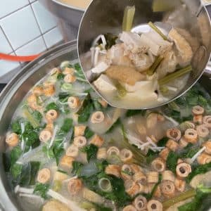 今回はブロッコリーの茎、人参、えのき、豚コマを入れました。(野菜はありもので大丈夫です)