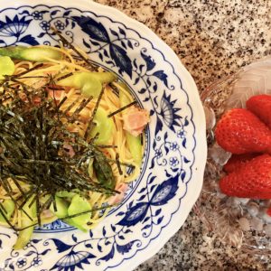 ごまと生姜を入れてお好みで七味を、食欲のわく具沢山スープにいたしました。