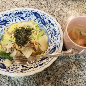 本日は、とろろも添えた豚肉たっぷりの温蕎麦をお召し上がり頂きました。いつも美味しかったと喜んで頂けて嬉しいです。