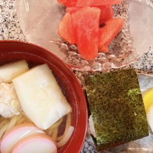 冷蔵庫に柿の葉寿司がございましたので、温かいお蕎麦とご一緒にお召し上がり頂きました。