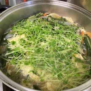 小松菜ときのこをサッとお出しで茹で上げました。