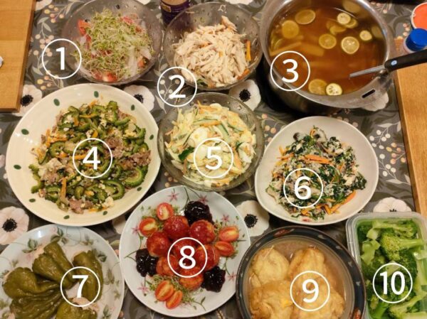 こんばんは。先週もありがとうございました。マロニーってそんな食べ方があるのですね。サラダも汁物も美味しかったです。マカロニとかと違って軽めで食べやすかったです。ブルーベリージャムのミートボールも美味しくて、まだまだブルーベリーあるのでまたつくってほしいです。たまご巾着もしみじみ美味しく。白和えも面倒で作らない1品なのでまたつくってほしいです。ごちそうさまでした。