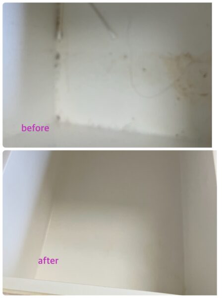 洗面所の化粧品を収納されている引き出しのお掃除しました。