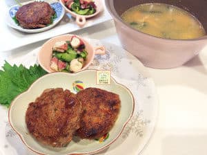 本日は、ご夕食にハンバーグをご用意させていただきました。玉ねぎをしっかり飴色になるまで炒めて香ばしさが出るようにお作りさせていただきました。
