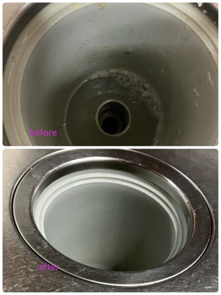 排水溝は毛くずを取り除き、ぬめりが出ないようにカビ取りしています。