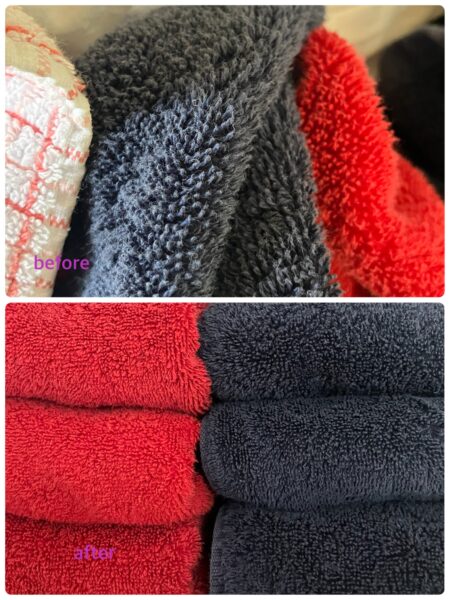 タオル類は種類分けして戸棚に収納しています。