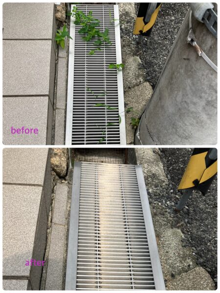 またまたグレーチングの下から元気に雑草が伸びて来たので草抜きしました。
