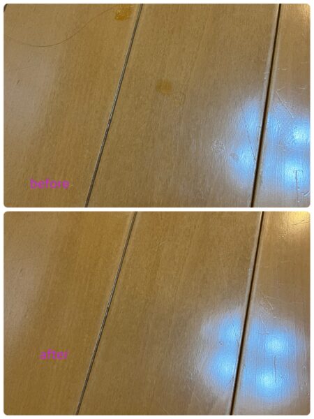 細かい汚れはサッと拭いただけでは取れないので、落ちにくい汚れは雑巾掛けしました。