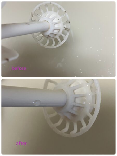 排水溝は毛くずを取り除き、ぬめりが出ないようにカビ取りしています。