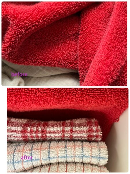 タオルは輪が手前にくるように収納するとスッキリ見えます。