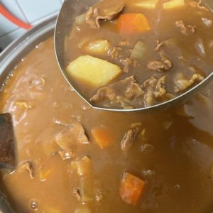 人参.厚揚げ.こんにゃくなどを出汁でじっくり煮含め、甘辛く味を含ませ最後に揚げたじゃがいもを入れ更に煮ました。