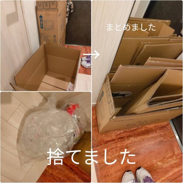 🟣段ボールもゴミ袋も1階のゴミ捨て場所に捨てました