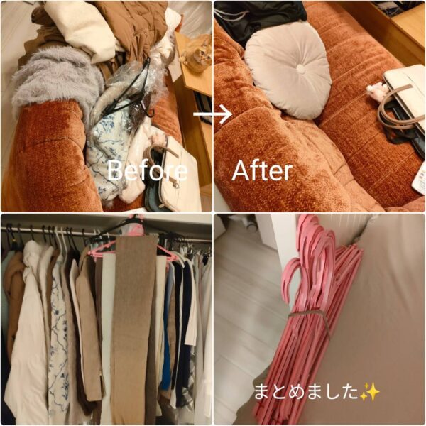 🟣ソファの上の服整頓しています