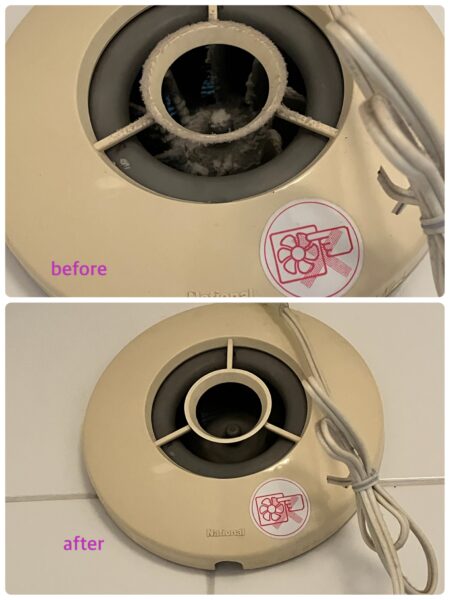 トイレは毎回お掃除させていただいておりますが、なかなか簡単に手の届かない2階のトイレ上の換気扇の拭き掃除しました。