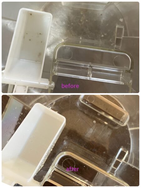 乾燥する冬の間はあまり使用することが少ない除湿機の水受けのお掃除をしました。