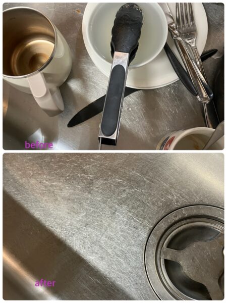 シンクは優しく磨き洗い流した後、乾拭きしてピカピカにしています。