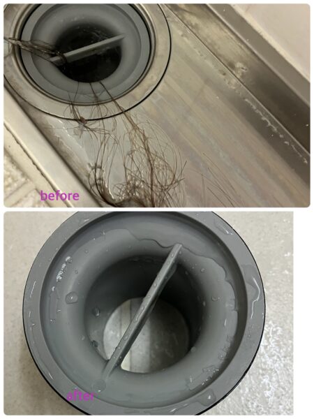 洗面所やお風呂場の排水溝は毛くずを取り除き、お掃除しています。