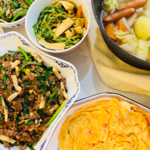 今日は台所・リビング掃除、洗濯物たたみ、洗濯、1Fお風呂掃除、1FF洗面台掃除、1F、2F掃除機、1FFトイレ掃除、キッチン、リビング、階段、洗面所、床拭き、ダンボールおまとをさせていただきました。