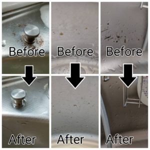 シンクは優しく磨き洗い流した後、乾拭きしてピカピカにしています。