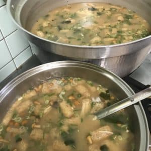 ②厚揚げをだし・砂糖・醤油・和牛でコトコト炊き卵でとじました、中まで味が染みるように仕上げました
